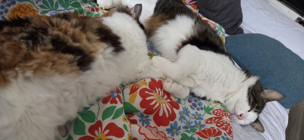 Die Schwestern Tail (schwarz-weiß) und Zizel (rot) waren meine ersten beiden Pflegekatzen. Sie zogen Anfang Dezember 2024 bei mir ein und noch im gleichen Monat wieder aus. Sie haben ihr Für-Immer-Zuhause bei einer tollen Familie gefunden.